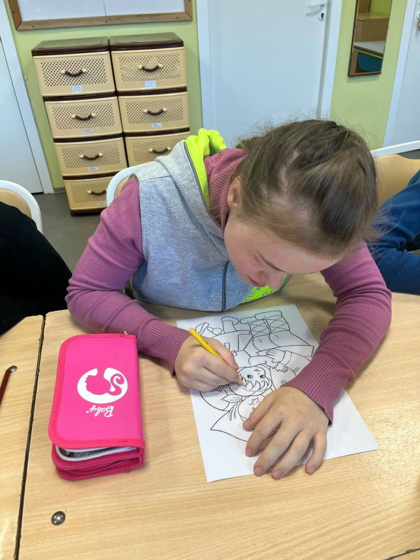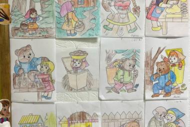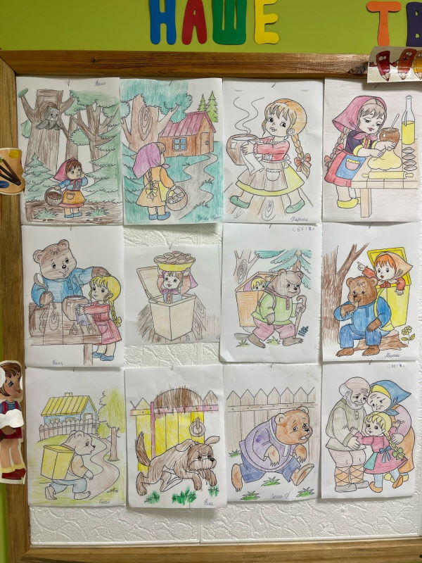 В ответ внимательные и благодарные слушатели выбрали любимые сюжеты из сказки и с удовольствием раскрасили их – получились яркие, добрые и очень искренние работы! Кто-то изобразил Машу в коробе, кто-то – пирожки в печи, а кто-то – дружбу между Машей и медведем.